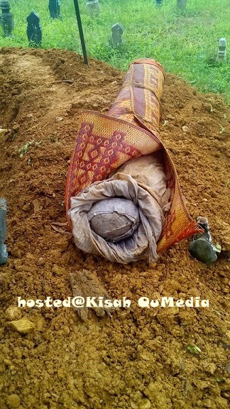 Keadaan jenazah yang utuh setelah kubur nya digali, Kain kafan dan serban serta jasad masih elok setelah kubur untuk dipindahkan ke tempat baru, mengikut sumber jenazah ini meninggal pada tahun 2009.